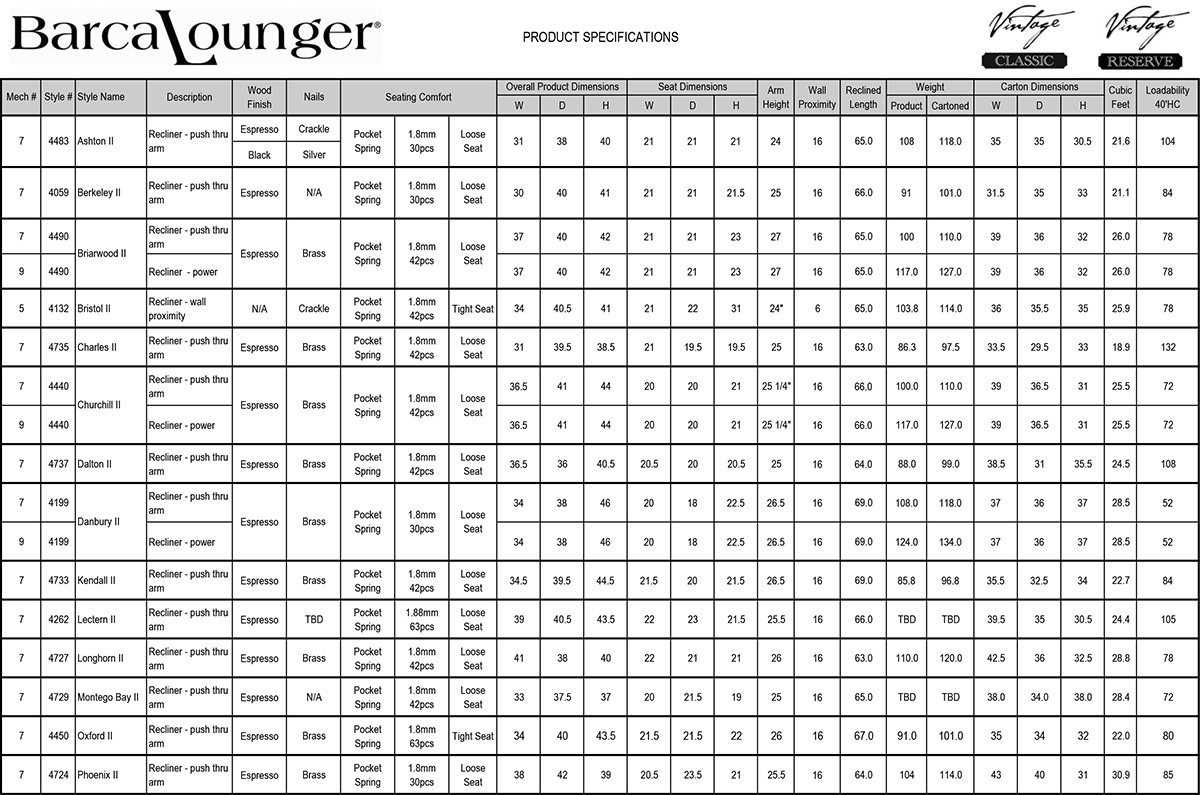 BarcaLounger Sizes and Dimensions - Recliners, Sofas, Loveseats and chairs.
